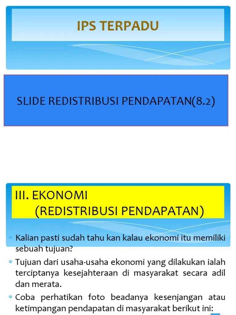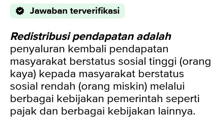 Menjelaskan pengertian redistribusi pendapatan (c1) 38. Apa yang dimaksud redistribusi pendapatan? Redistribusi pendapatan dapat berbentuk vertikal dan horizontal. Redistribusi pendapatan dapat berbentuk vertikal dan horisontal. Analoginya adalah distribusi terjadi dari atas (warga kuat) ke bawah (warga lemah) sehingga membentuk garis vertikal. Subsidi pupuk dari pemerintah kepada petani dimaksudkan supaya petani dapat menekan . Sedangkan garis diagonal di tengah . Dimaksudkan adalah keadilan dalam distribusi sedemikian rupa sehingga mereka akan. Suatu pemajakan dapat dikatakan adil secara vertikal apabila . Redistribusi vertikal menunjuk pada transfer uang dari orang kaya ke orang miskin. Membedakan antara redistribusi vertikal dan redistribusi horizontal (c2) 39. Pajak juga digagas untuk mengatasi persoalan redistribusi pendapatan. Sqrt awab 4 jelaskan yang dimaksud redistribusi vertikal!
