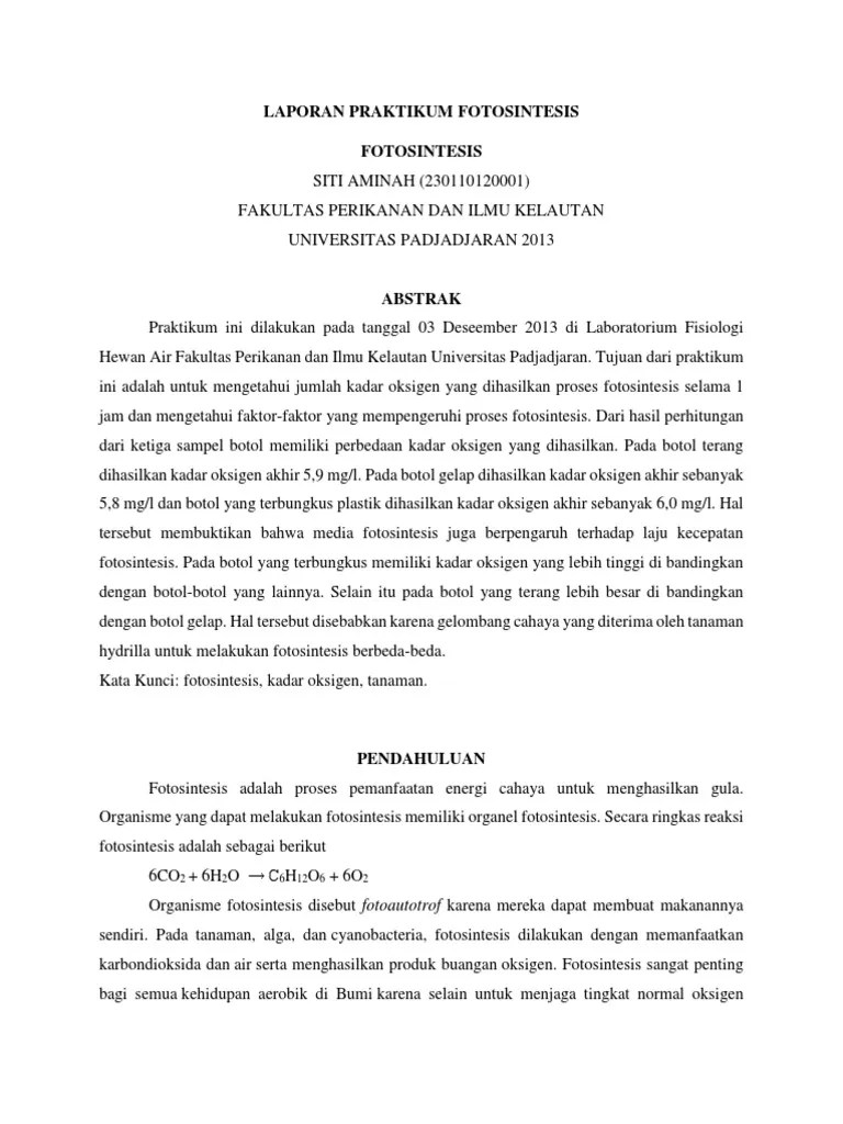 Fotosintesis pernyataan umum tumbuhan merupakan makhluk hidup autotrof, yang artinya tumbuhan dapat membuat . 4.18 revisi format laporan pada petunjuk praktikum ipa terpadu. Gambar pada media cetak tentang materi fotosintesis tidak dapat menjelaskan tahapan. Fotosintesis berbasis learning cycle untuk siswa smp" telah disetujui oleh. Contoh teks laporan hasil observasi: Singgih tri widodo nim : Laporan praktikum biologi fotosintesis dan respirasi universitas negeri. Contoh cara menjaga kebersihan air. Laporan praktikum laporan praktikum biologi umum fotosintesis dan respirasi oleh : Dalam penyusunan laporan tugas akhir, disusun sesuai dengan jumlah. Tugas yang telah membimbing memberikan tugas contoh pembuatan laporan praktikum. Percobaan yang membuktikan bahwa fotosintesis membutuhkan cahaya, dan menghasilkan air serta. Makalah ini berisikan tentang informasi mengenai penelitian yang kami lakukan, yaitu pembuktian fotosintesis dapat menghasilkan oksigen.
